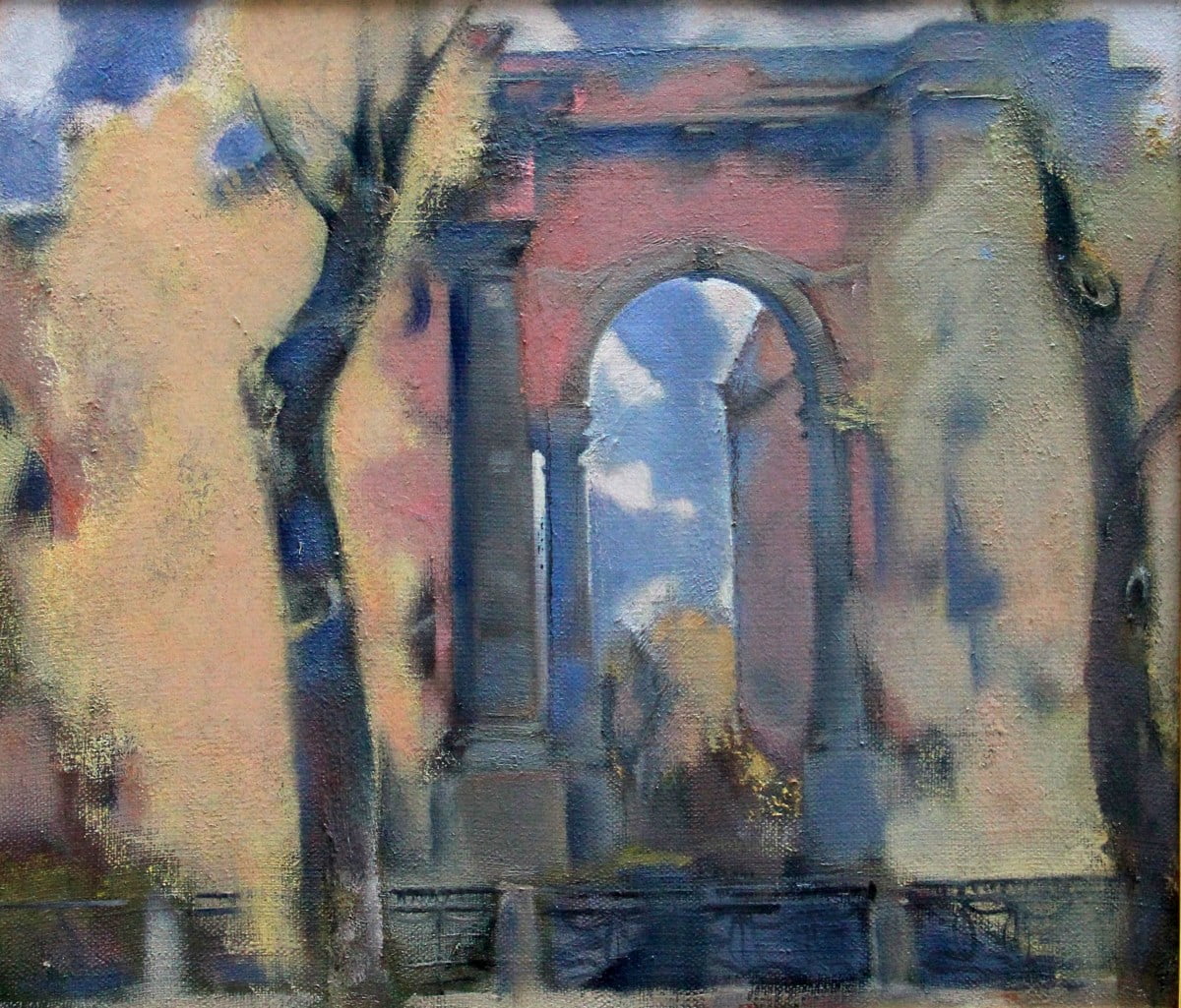 Олег Павлович Марушкин, любуется ли он морем или прекрасным уголком природы пушкинской поры, всегда воспевает возвышенный мир красоты, контрастирующий с серой повседневностью. Когда живописец пишет уголки старых парков с таинственными развалинами, его влекут укромные и тихие места, где природа, побеждая культуру, берёт своё. Лирическое настроение этих работ пронизано поэзией. Работы художника наполнены воздухом и светом, в которых живут недосягаемо прекрасные герои.