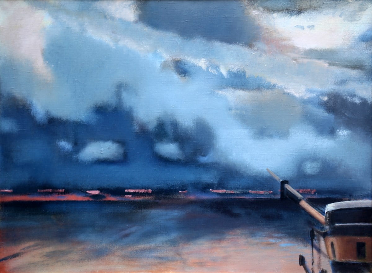 Тему бунта Олег Павлович продолжает и в игре природных стихий. Излюбленным жанром наряду с исторической картиной становится марина. Море завораживает художника. Корабль один на один в пучине волн. Море прекрасно и жестоко одновременно. И человек, как бы силен он ни был, всего лишь игрушка в руках стихии и рока. Художник в своих произведениях наблюдает за этой неравной схваткой.