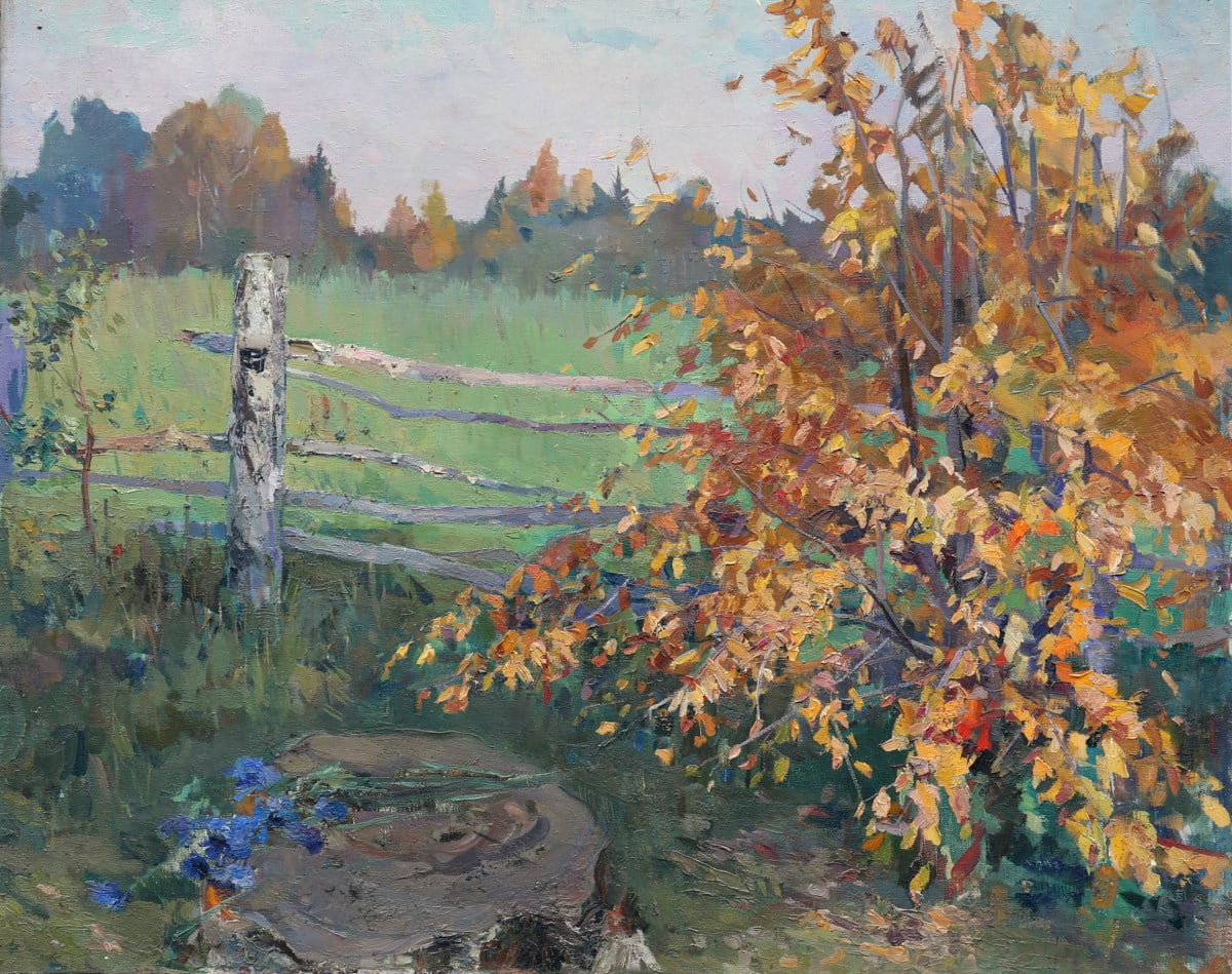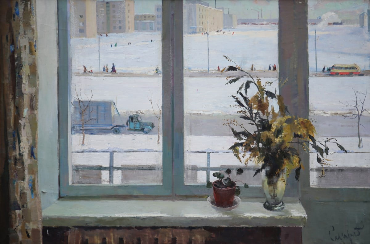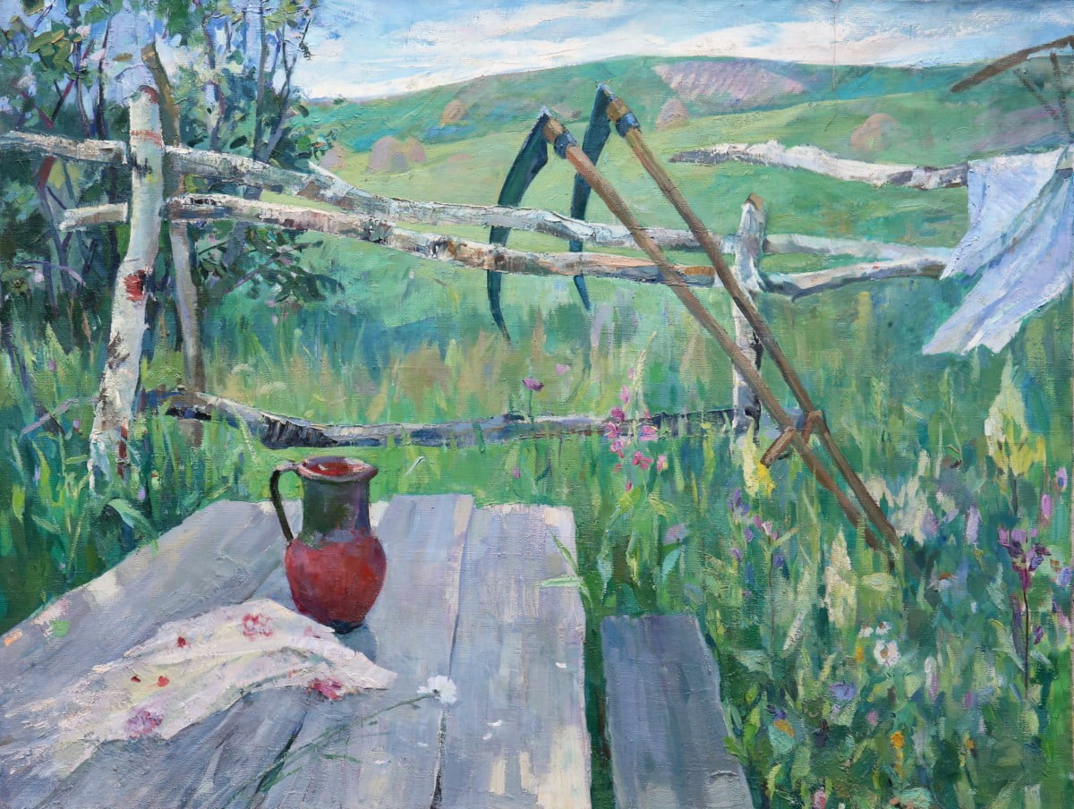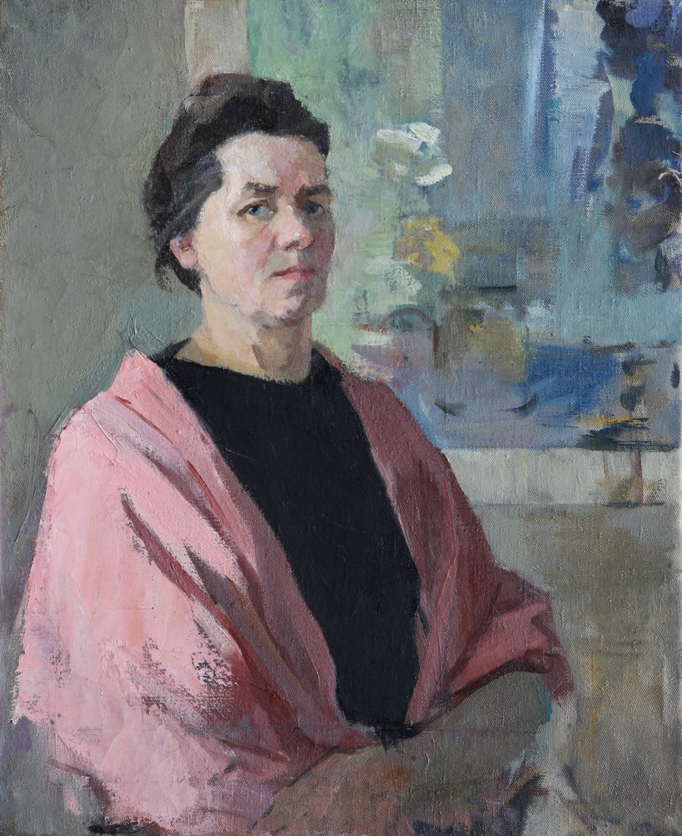 Мария Ивановна Смирнова (1918 — 2015) — ленинградская художница, чья жизнь сплетена с историей века: блокада, эвакуация, послевоенное возрождение. Она принадлежит к поколению, воспитанному строгими канонами соцреализма, но сумевшему сохранить в себе романтический взгляд на мир. Её картины — это уютная вселенная, где труд радостен, природа сияет, а жизнь похожа на добрую сказку. Земля здесь плодородна, воздух мерцает радужными переливами, а каждый предмет — будь то спелое яблоко, хрустальная ваза или книга на столе — окутан тонкой, почти волшебной дымкой.