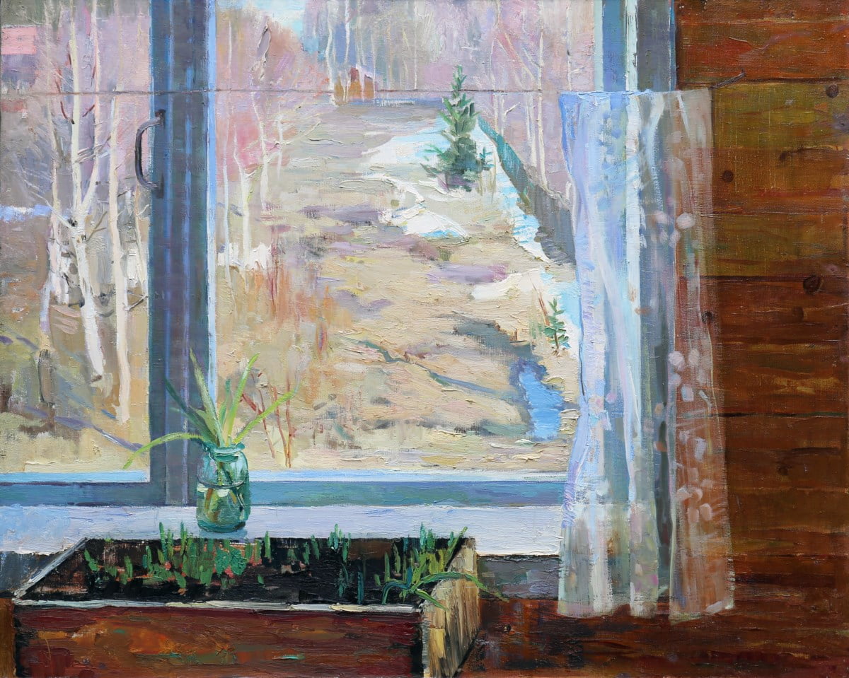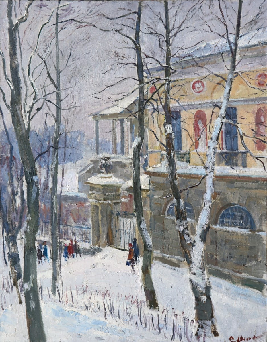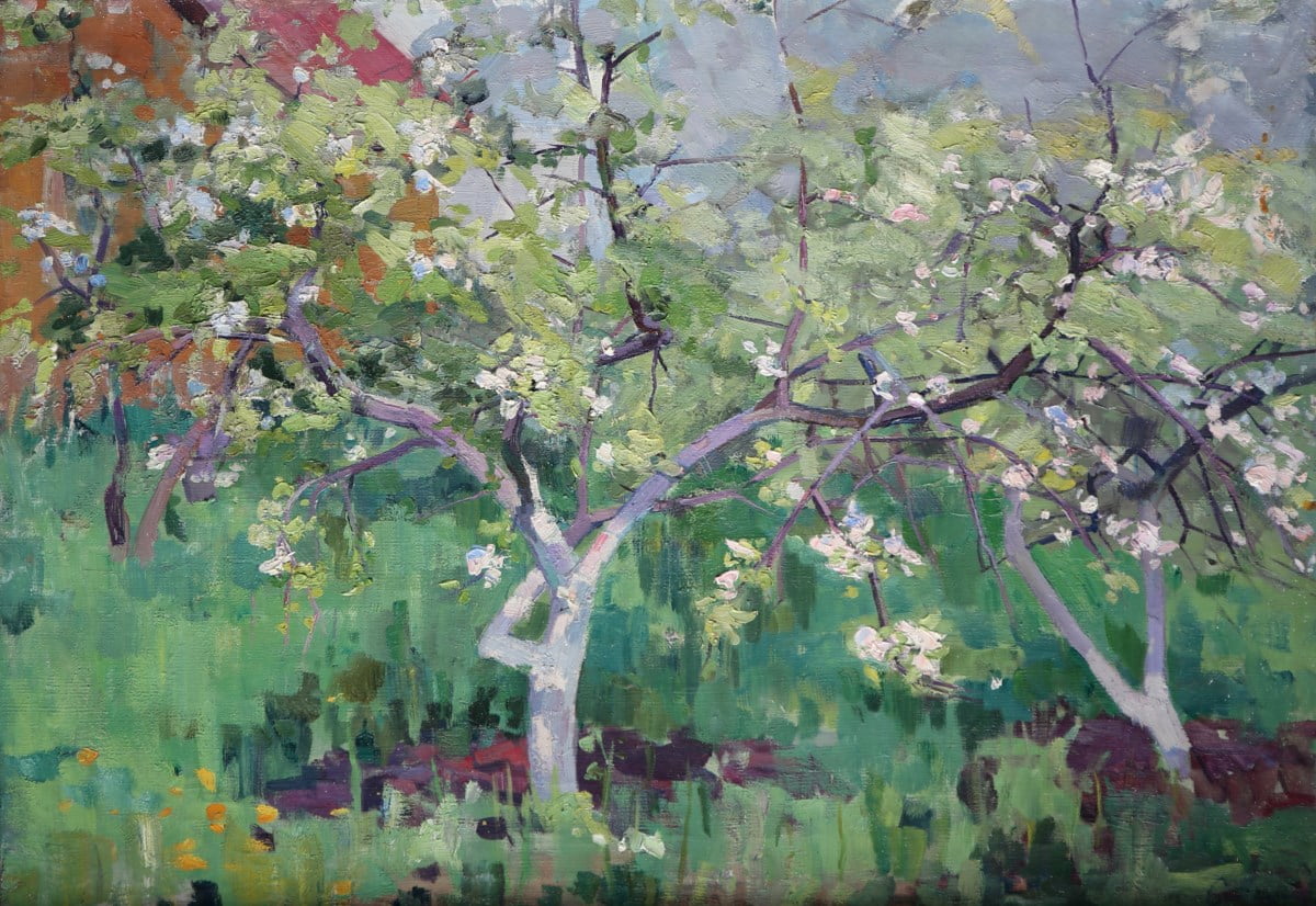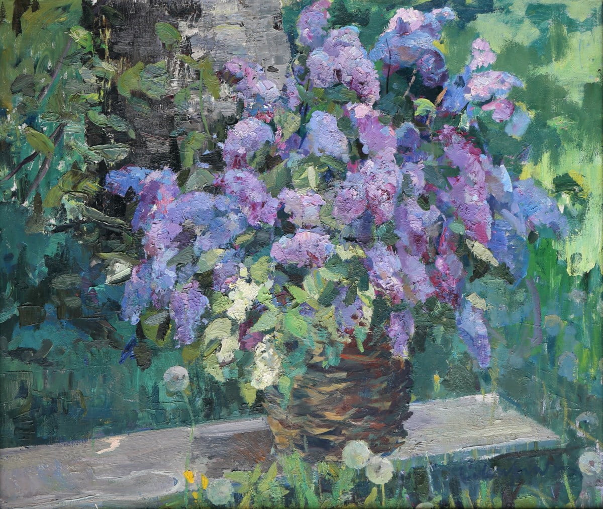 Мария Ивановна Смирнова (1918 — 2015) — ленинградская художница, чья жизнь сплетена с историей века: блокада, эвакуация, послевоенное возрождение. Она принадлежит к поколению, воспитанному строгими канонами соцреализма, но сумевшему сохранить в себе романтический взгляд на мир. Её картины — это уютная вселенная, где труд радостен, природа сияет, а жизнь похожа на добрую сказку. Земля здесь плодородна, воздух мерцает радужными переливами, а каждый предмет — будь то спелое яблоко, хрустальная ваза или книга на столе — окутан тонкой, почти волшебной дымкой.