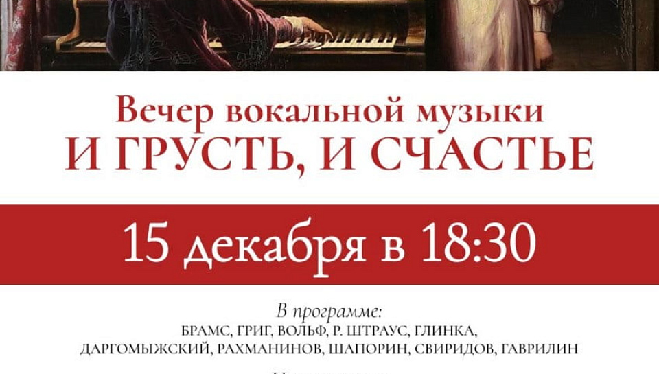 В программе: Глинка, Даргомыжский, Балакирев, Бородин, Рахманинов, Свиридов, Гаврилин, Шуман, Лист, Брамс, Вольф