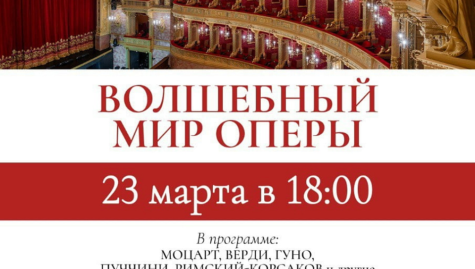 В программе сочинения: Вольфганга Амадея Моцарта, Джузеппе Верди, Шарля Гуно, Джакомо Пуччини, Николая Андреевича Римского-Корсакова и других